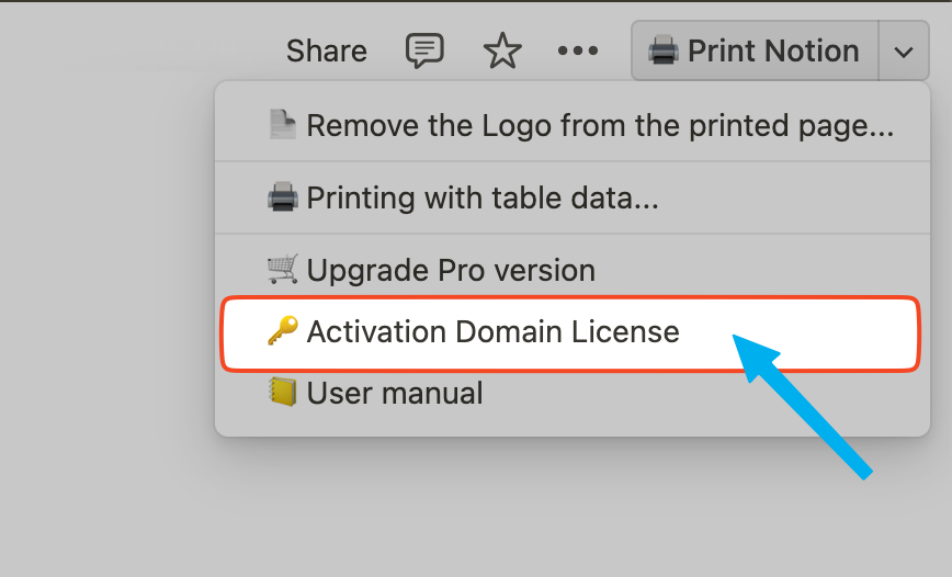The Domain license is used for the activation of users under the same domain name. You can find and click 'Activation Domain License' in the Print Notion menu, and follow the page prompts to log in with the account of the domain name that purchased the Domain license, which can automatically activate the product.